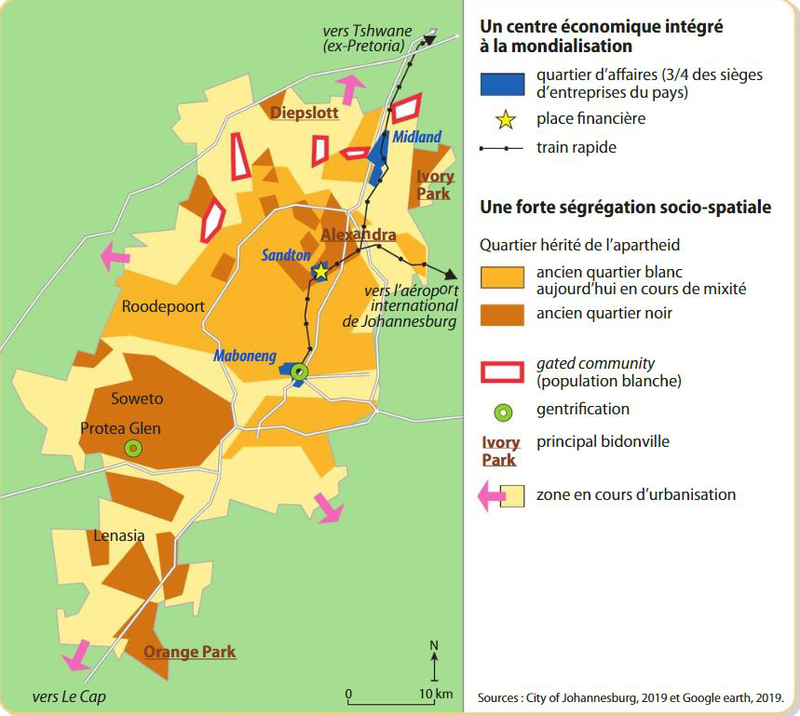 24 ans après la fin de l'apartheid, l'organisation spatiale de Johannesburg reste très largement marquée par les politiques raciales du régime ségrégationniste. Dans les années 1950, les populations noires ont été massivement relogées dans des quartiers en bordure des villes. En 1994, la transition a vu l'abolition des lois limitant la liberté d'installation des Noirs. A la suite de l'afflux de populations noires dans le centre, les Blancs ont préféré fuir dans les banlieues nord, opulentes et verdoyantes. Les grandes entreprises se sont installées à Sandton, nouveau quartier d'affaires ultramoderne. Tombé en décrépitude, le centre-ville connaît alors des niveaux de criminalité parmi les plus élevés du pays. Mais, certains bâtiments sont peu à peu rénovés et, lentement, les habitants reviennent. Le projet Jewel City vise à restaurer l'ancienne bourse aux diamants et à créer un nouveau quartier avec école, clinique, commerces et, bien sûr, sécurité renforcée. Mais cette effervescence fait aussi des mécontents. Noluthando Sithebe tient une boutique d'artisanat dans l'un des premiers quartiers à avoir été revitalisés. « Les nouveaux propriétaires sont blancs et ils veulent faire partir tous les commerces tenus par des Noirs », accuse la jeune femme, qui regrette la gentrification d'un quartier jusque-là consacré aux artistes et à la créativité.