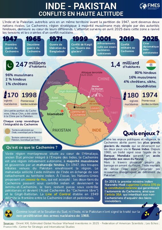 New Delhi n’est pas uniquement dans une position avantageuse. La Chine, qui n’est pas signataire du traité, alliée du Pakistan et rivale de New Delhi, a aussi les moyens d’utiliser les parties amont des grands fleuves internationaux ayant leurs sources sur le plateau tibétain. L’attaque du 22 avril rappelle combien la paix est fragile entre les anciens belligérants, chacun dotés de l’arme nucléaire.