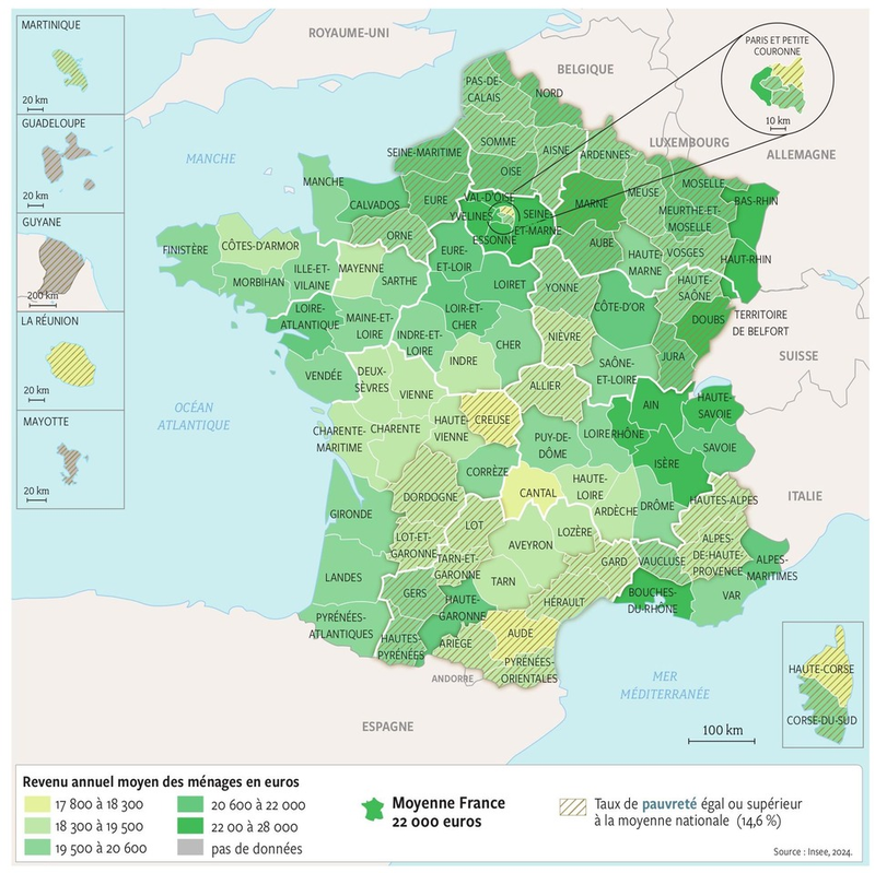 2) Comment se manifestent d’un point de vue spatial les inégalités au sein du territoire étudié ? Identifiez les territoires où la pauvreté est la plus prononcée (réfléchissez à différentes échelles)