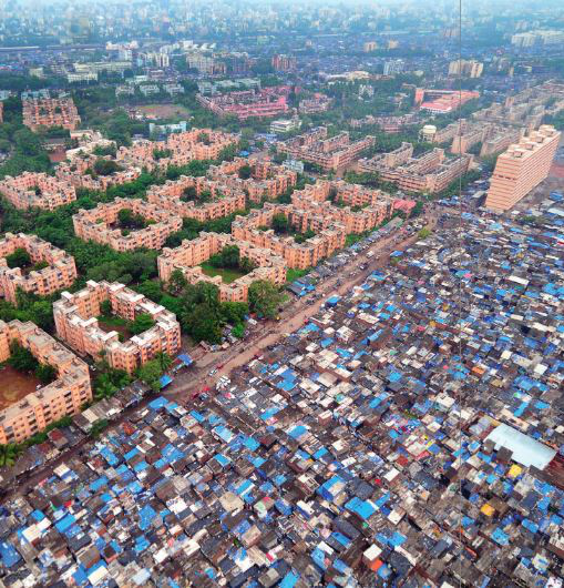 Le quartier de Bandra East, à l'Est du centre de Mumbai, présente des contrastes entre ses quartiers d'habitations. Un bidonville voisine avec des ilots d'immeubles résidentiels, structurés et paysagers. Government Colony, destiné au personnel administratif du gouvernement du Maharashtra. Ce quartier, en pleine mutation, est en cours de réhabilitation. Un nouveau projet résidentiel aisé s'y développe, grignotant l'espace urbain informel.