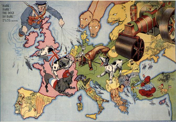 « Les chiens de guerre se sont échappés en Europe, et ils font un tintamarre infernal. Tout a été commencé par un teckel [Dashund] devenu enragé, bien que sa rage soit si méthodique qu’on puisse nourrir quelques doutes. (Note pour les ignorants : en allemand, chien se dit hund, en anglais, Allemand se dit Hun.) …Le teckel a commencé par attaquer le griffon belge, le plus vulnérable ; il l’a cruellement brutalisé mais a été incapable de le tuer… Regardez et vous trouverez beaucoup de choses. Mais pas la paix. Elle est gâchée maintenant jusqu’à ce qu’on trouve une bonne muselière pour ce teckel."